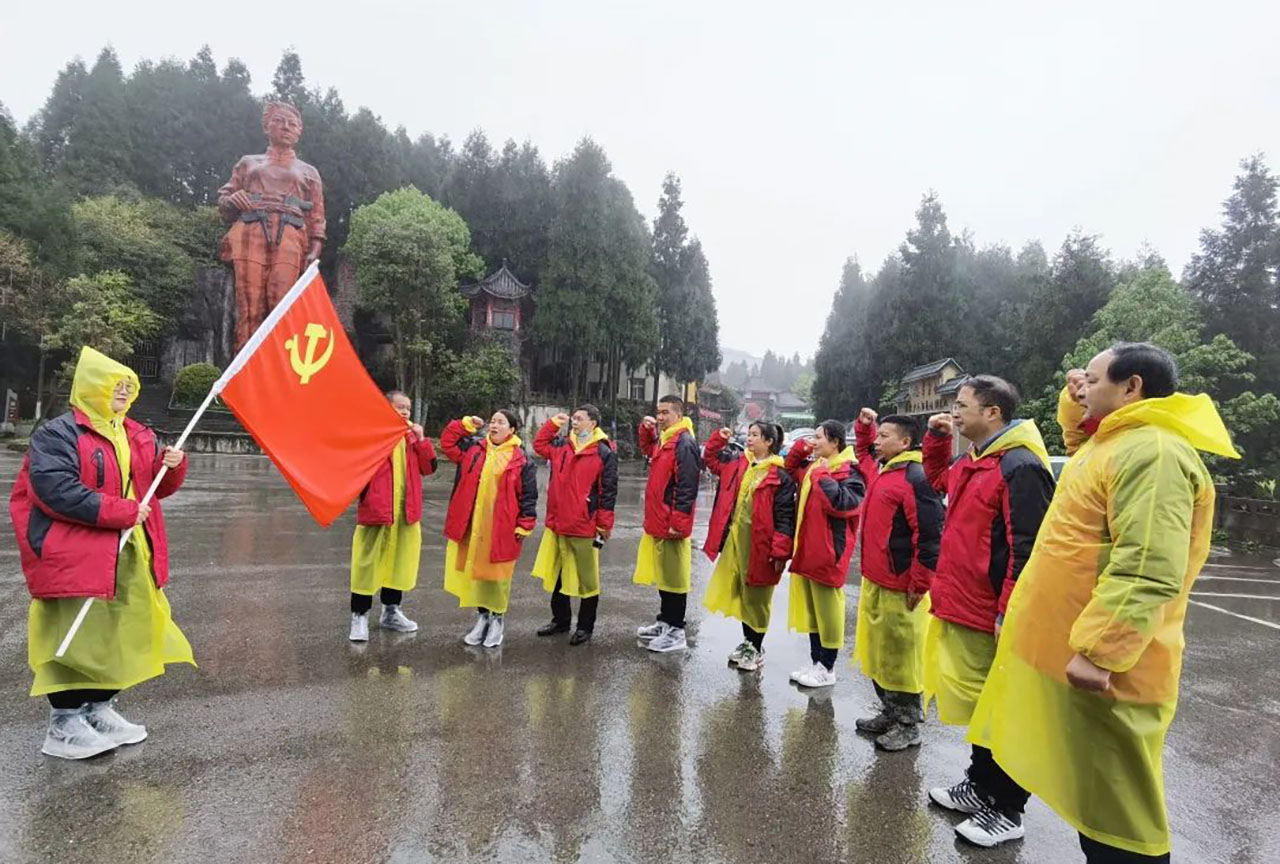 啟動之際,黨支部書記主持小會,強調(diào)活動目的與意義,發(fā)揮民主,商議落實人員分工、時間安排等。漫長的車程里,《黨啊,親愛的媽媽》《沒有共產(chǎn)黨就沒有新中國》,一首首歌頌黨的歌曲從黨員們的心窩里飛出,唱響對黨的熱愛之情。慶祝中國共產(chǎn)黨成立100周年在華鎣山起義紀念館里,我們翻閱歷史畫卷,踏尋先烈的崢嶸歲月,感受英雄們那熠熠閃光的革命精神。