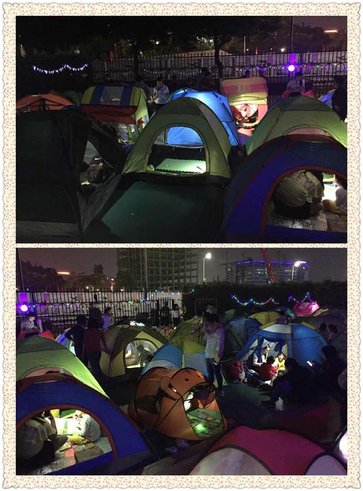 活動開始,帳篷全亮起來了。在燈光的照射下,帳篷顯示各種顏色,有藍的,有紅的,有紫的……有沒有你最愛的那一頂!