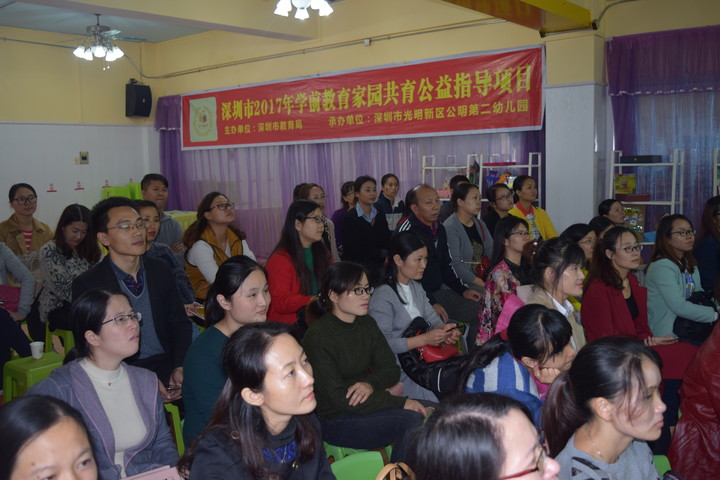 親子閱讀在提高幼兒語言、審美、想象等諸多能力的同進(jìn),還在塑造幼兒健全人格、豐富幼兒情感體驗(yàn)、培養(yǎng)幼兒良好習(xí)慣、展開生命教育方面發(fā)揮著重要作用。對人的一生來說,人格的養(yǎng)成是從小塑造并基本定型的,且定型后很難糾正。因此學(xué)前是兒童人格塑造的奠基石,是進(jìn)行品德教育的重要時期,也是良好心理品質(zhì)形成的最佳時期。閱讀優(yōu)秀繪本,是會激發(fā)并促使他們向書中優(yōu)秀人物學(xué)習(xí),在生活中會不自覺以其為榜樣并努力向其靠擾。依托深圳市2017年學(xué)前教育家園共育公益指導(dǎo)項(xiàng)目活動,2017年11月20日下午,為多元集聚社會資源共同推動科學(xué)保教、家園共育、提升學(xué)前教育質(zhì)量,提高學(xué)前兒童家長的科學(xué)育兒能力,在光明新區(qū)公明第二幼兒園開展了講座——親子閱讀之開啟幸福童年的密碼。