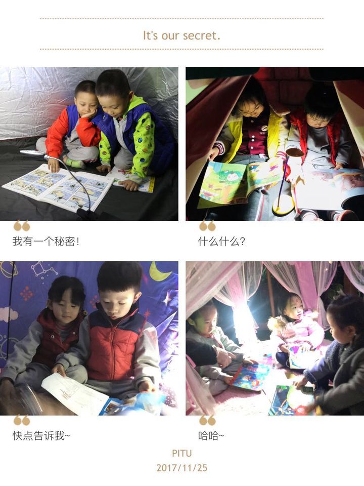 書是甜甜的,愛是濃濃的。大朋友和小朋友們卻絲毫沒有因為天氣感到寒冷。短短的"螢火蟲閱讀夜"漸漸地接近了尾聲,大家都戀戀不舍這種別樣的親密體驗。閱讀無止境,讓爸爸媽媽、寶貝們、老師們繼續(xù)向幸福出發(fā)……