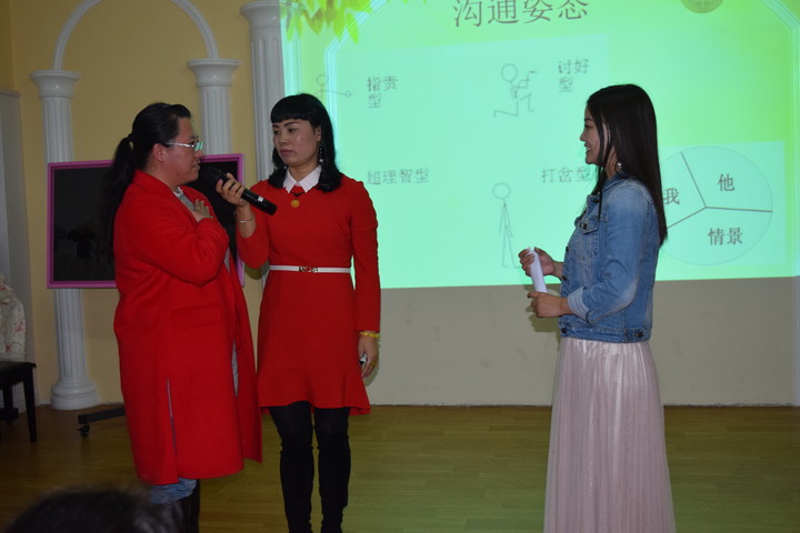 講座開始前,祝老師通過以一個小游戲開始了親子溝通技巧的活動,通過這個小游戲,潛移默化地讓家長知道我們只會做出熟悉的模式,而不是應(yīng)該的模式。對于我們的孩子,也沒有必須要這樣做的理由。為了讓家長們之間更加熟悉放松,讓家長兩兩面對面,相互溝通,了解對方,通過位置的不斷變化,與不同的家長溝通。接著,祝老師以一段優(yōu)美而傷感的語錄打開了家長們塵封已久的心房,讓家長們不禁紛紛落淚,或許是生活的忙碌,催促我們不斷地往前走,但是有時候我們卻忘了與我們身邊的人多說說心里話,忘了告訴他們,我很愛她。