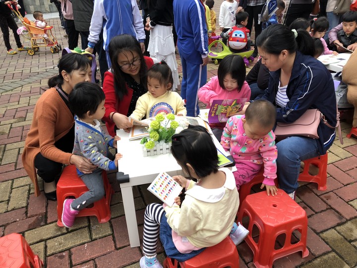 為了促使孩子養(yǎng)成良好的閱讀習慣,培養(yǎng)其閱讀興趣,同時為了讓更多的家庭參與到親子閱讀中,2018年11月28日下午興茂幼兒園走進社區(qū)開展了“悅讀齊步走”讀書活動。
