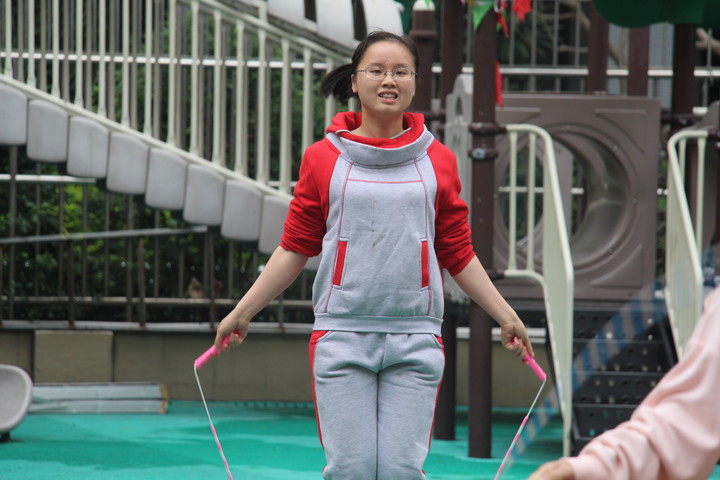 接下來是跳繩比賽,看老師們一個個身輕如燕,那揮舞著的跳繩的樣子格外認真。