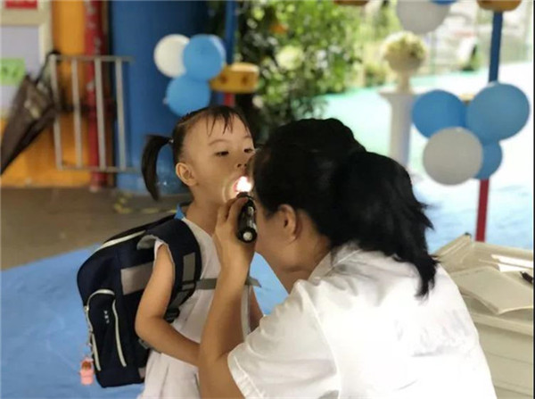 我們的醫(yī)生姐姐一早就在門口等候孩子們的到來,給孩子們進(jìn)行晨檢!
