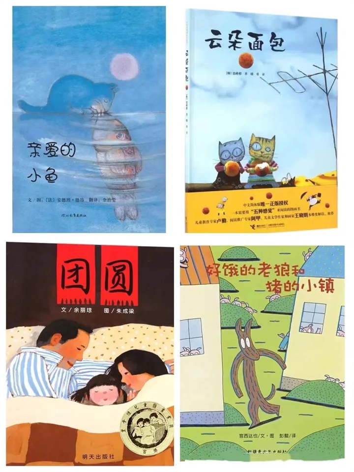 《親愛的小魚》《棕熊的神奇事》《團圓》《好餓的老狼和豬的小鎮(zhèn)》《長頸鹿不會跳舞》《搬過來、搬過去》《月亮的味道》《最奇妙的蛋》《獨一無二的魚》《沒有耳朵的兔子》《云朵面包》。