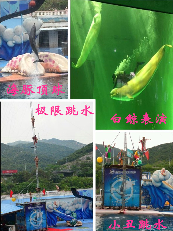 吃過午飯之后就是自由活動(dòng)時(shí)間,我們就去看了各種各樣的表演:白鯨表演、海底萬魚爭食表演、極限高空跳水表演、異國小丑跳水表演、海豹、海獅、海豚的表演...孩子們和家長們都看得津津有味,要退場(chǎng)了孩子們還依依不舍,留連忘返。