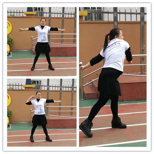 顧娟娟老師示范投擲動作。