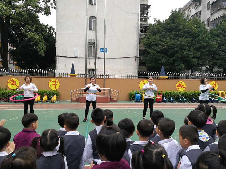 媽媽們進(jìn)行轉(zhuǎn)呼啦圈展示。