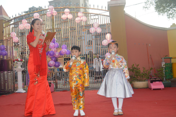 幼兒園門口充滿創(chuàng)意的氣球秀,五彩繽紛的花環(huán),主持人閃亮登場啦!