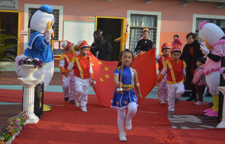 新的一年,開啟新的希望,新的征程,承載新的夢想。2017年2月13日上午8時,燕川幼兒園在操場上舉行了隆重而有意義地開學典禮暨“金雞報春”主題活動。當國歌奏響時,四位升旗手護衛(wèi)著國旗,步履軒昂大步向前走,神氣活現(xiàn),贏得了老師、家長和小朋友們贊賞的眼光,有的家長則成了攝影師,他們拿著照相機,為孩子們記錄下這珍貴的時刻。鮮艷的五星紅旗正伴著國歌迎風飛揚,全體師幼翹首以盼,盼望新學期、新夢想、新收獲。伴隨著激昂有力的國歌,鮮艷的五星紅旗徐徐升起,全場的家長們、師生們跟隨著樂曲唱起了國歌,歌聲嘹亮,悅耳動聽。