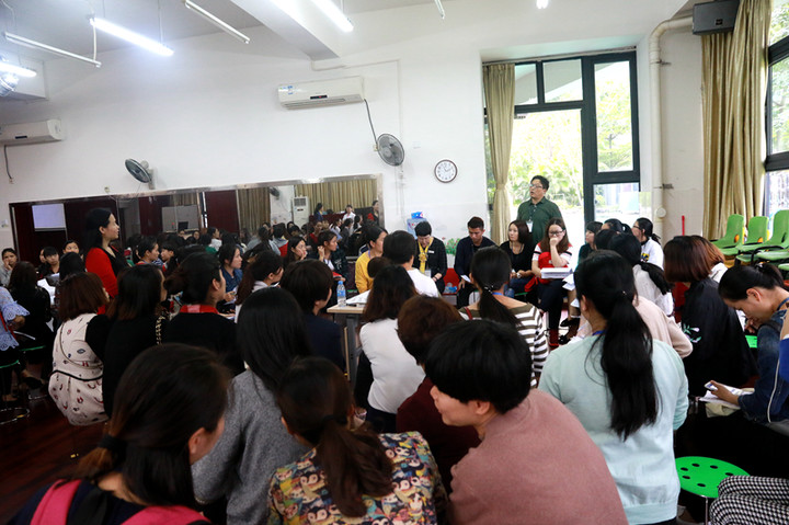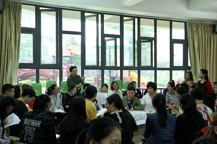 為展示寶安幼教集團(tuán)辦學(xué)成果,共享我區(qū)最先進(jìn)的教育教學(xué)經(jīng)驗(yàn),發(fā)揮公辦園在學(xué)前教育發(fā)展中的引領(lǐng)、示范作用,經(jīng)寶安區(qū)教科院綜合教研部與幼教集團(tuán)共同研究、策劃,決定向全區(qū)骨干幼兒園的開展系列半日觀摩集體教研活動。寶安區(qū)教科院以《幼兒園工作規(guī)程》為統(tǒng)領(lǐng),穩(wěn)步推進(jìn)《幼兒園教育指導(dǎo)綱要》、《3-6歲兒童學(xué)習(xí)與發(fā)展指南》、廣東省《幼兒園一日活動指引》對課程教學(xué)的各項(xiàng)要求,突出學(xué)習(xí)環(huán)境在幼兒教育中的基礎(chǔ)性作用,強(qiáng)調(diào)一日生活的合理安排,規(guī)范園本課程建設(shè),有重點(diǎn)、分階段推進(jìn)我區(qū)幼兒園教育教學(xué)工作,不斷提升教師的教育理念和專業(yè)水平。2017年4月25日上午在寶安區(qū)教科培秦義老師的組織下在寶安區(qū)新城幼兒園面向全區(qū)骨干幼兒園進(jìn)行了全語言和戶外自主活動的半日觀摩活動。