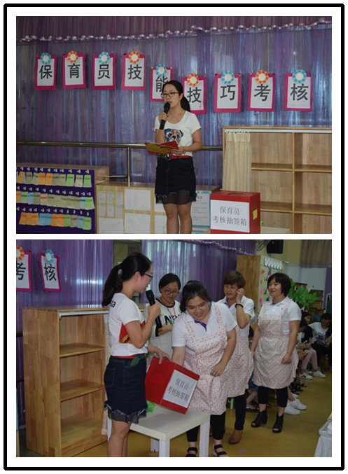 為促進(jìn)我園保育老師基本專業(yè)技能的發(fā)展,促進(jìn)保教結(jié)合,建設(shè)一支高素質(zhì)高質(zhì)量的保育員隊(duì)伍,不斷提高我園保育工作、管理水平和保育質(zhì)量;我園在5月份對全園保育老師進(jìn)行技能技巧考核,考核分筆試和實(shí)操。實(shí)操考核內(nèi)容為“1.疊被子2.擦桌子”。本次考核疊被子,擦桌子這些內(nèi)務(wù),主要目的是要規(guī)范保育員日常操作流程以及提高保育員工作的效率,讓保育員的內(nèi)務(wù)工作能力更上一層樓。