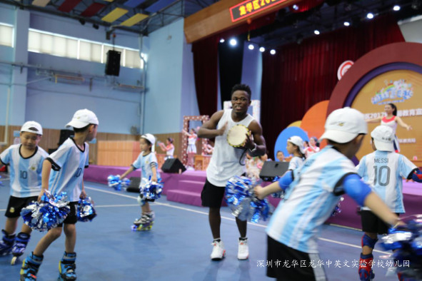 由深圳市龍華中英文實(shí)驗(yàn)學(xué)校幼兒園的師生們?yōu)槲覀冄堇[了活力四射的開場(chǎng)舞《青春舞曲》。
