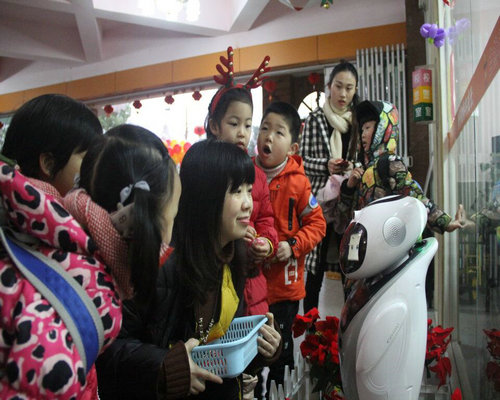 新的一年就要來到了,幼兒園里也來了一位新朋友,他就是機器人“小伊”。小伊也在大廳里迎接我們小朋友和大朋友的到來,孩子們都覺得很好奇,爭先恐后的向機器人“小伊”提問,“小伊”幽默有趣的回答大家的問題逗得大家哈哈大笑。