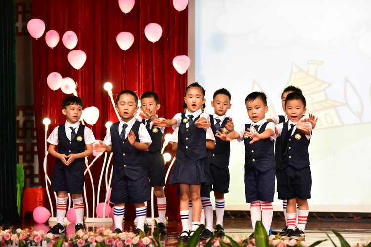 本次典禮活動以主持人郭偉玲老師、五位幼兒小主持的開場詞和曾園長的親切致辭拉開了本次典禮的第一篇章:展示篇。老師把孩子們?nèi)陮W(xué)到的本領(lǐng)編成了舞蹈、合唱、故事表演等節(jié)目,小朋友一起踏上了美麗的舞臺,盡情展現(xiàn)了他們最閃亮的一面,一句句美好的祝愿,讓孩子們對未來的生活充滿信心,也對即將到來的小學(xué)生活有了新的憧憬?!懂厴I(yè)歌》和《媽媽老師,老師媽媽》,讓離別的依惜之情更濃;《一年級》和《我想要飛》表達(dá)著孩子們對未來的憧憬與期待。最后,一場舞蹈表演《跪羊圖》引出了本次活動的感恩離別篇,教師和幼兒共同展示舞蹈《謝謝你,老師》,教師和幼兒的淚水和呼喚表達(dá)了彼此的不舍。