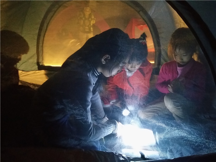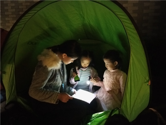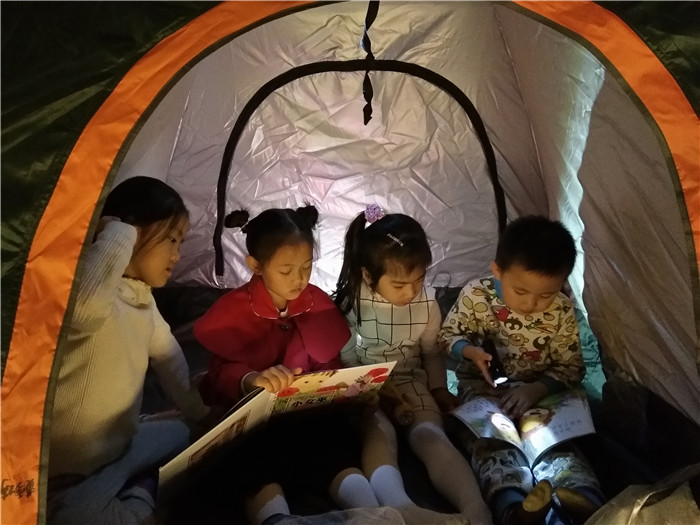 夜空中,群星璀璨,而我們幼兒園,此時(shí)也是熒光閃閃。當(dāng)一個(gè)個(gè)孩子拿著手電筒,帶上自己喜愛的書籍,穿插在各個(gè)帳篷之間,慢慢地躲進(jìn)自己喜愛的“城堡”中,沉靜在書的海洋中,你能想象此時(shí)此刻的美好嗎?現(xiàn)在,就讓我們一起走進(jìn)他們的世界,感受遨游在書海中的美好吧!