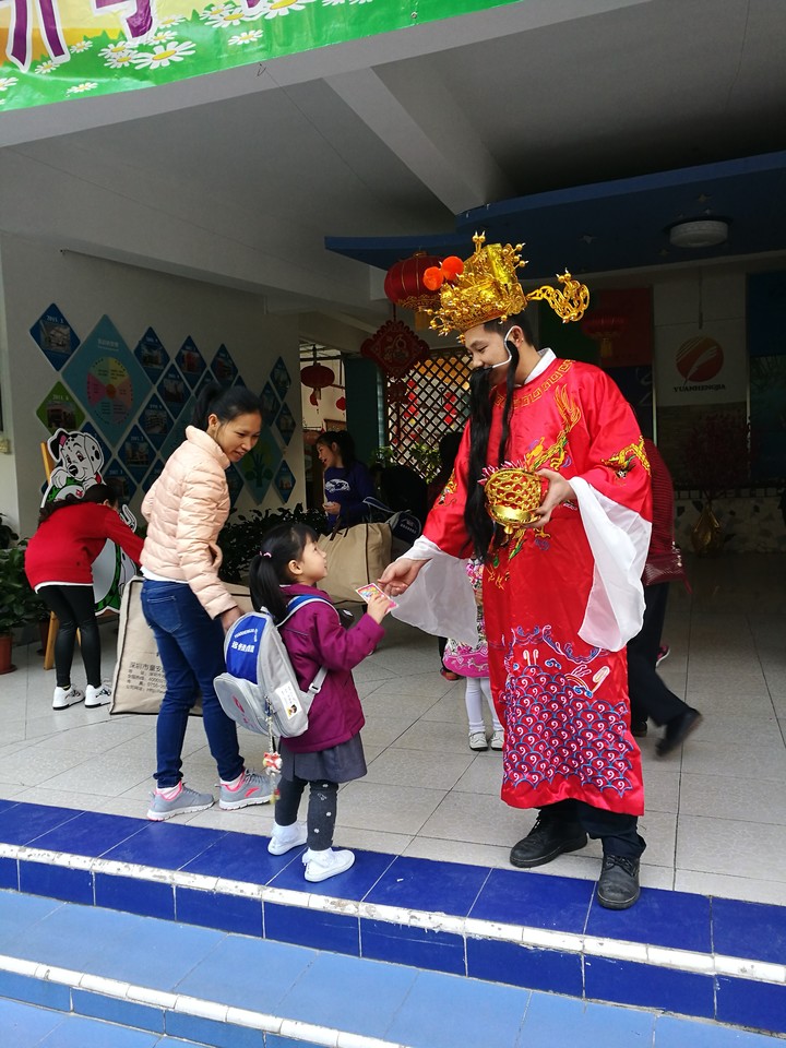 園長媽媽帶著老師們也早早地在幼兒園門口熱情地歡迎寶貝們回園;保健醫(yī)生為孩子們細心地做好晨間檢查;“Welcome back to kindergarten”英語老師也在用英語歡迎孩子們回園;最讓孩子們欣喜的是財神爺帶著金童玉女在校門口迎接大家,并送上裝有糖果的利是紅包,給新年第一天回園的孩子們帶來了一天美好的心情。