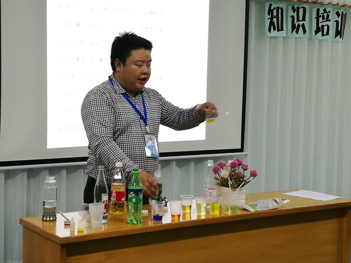 本次講座十分榮幸地請(qǐng)到了新生活環(huán)境保護(hù)與治理中心的唐維副主任,在第一個(gè)環(huán)節(jié)他向大家講解了什么是垃圾分類、垃圾分類的意義、以及垃圾可以分為可回收垃圾、廚余垃圾、有害垃圾、其他垃圾這四類。在第二個(gè)環(huán)節(jié)唐維副主任又向大家拋出一個(gè)問題--家庭環(huán)保你是否注意?首先,唐維副主任提出自來水的唯一處理方式是過濾。接著,他又提出水質(zhì)決定體質(zhì)這個(gè)觀點(diǎn),水可以分為呈酸性的水和呈堿性的水,而我們?nèi)梭w所需要的是堿性的水。最后,唐維副主任通過實(shí)驗(yàn)向大家展示了哪些是呈酸性的水,哪些呈堿性的水。通過這些生動(dòng)有趣的實(shí)驗(yàn),老師們初步了解到純凈水是呈酸性的水,而礦物質(zhì)水是呈堿性的水,因此我們平常應(yīng)該多喝礦物質(zhì)水。