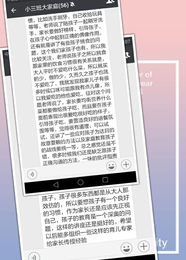 每一次的主題講座,不僅能讓家長(zhǎng)學(xué)到育兒知識(shí),而且能更好地幫助家長(zhǎng)和幼兒在家開展親子溝通的內(nèi)容。講座之后不少家長(zhǎng)感嘆原來平時(shí)并不起眼的一些生活習(xí)慣,對(duì)孩子的影響是如此深遠(yuǎn),也由衷的感謝幼兒園老師們每天堅(jiān)持不懈的從細(xì)節(jié)之處培養(yǎng)孩子們的好習(xí)慣。