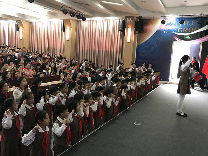 2017年12月15日下午,龍華中英文實(shí)驗(yàn)學(xué)校實(shí)驗(yàn)部一年級(jí)學(xué)生在多功能報(bào)告廳舉行了新隊(duì)員入隊(duì)儀式。為迎接這個(gè)神圣的日字子的到來,一年級(jí)進(jìn)行了隊(duì)前教育,各中隊(duì)提前開展了“隊(duì)知識(shí)回顧”等系列活動(dòng),學(xué)生們遞交了書面的入隊(duì)申請(qǐng)書。