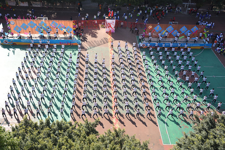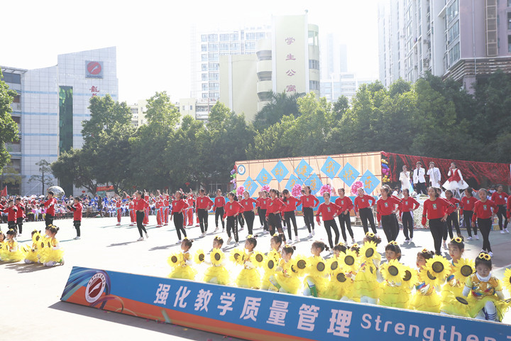 深圳市龍華中英文實驗學校藝術(shù)體育作為“國際理解教育”、“藝體教育”、“創(chuàng)客教育”三大特色之一,從2017年秋季開始,在全國名校長、特級教師,學校卜祥林校長的帶領(lǐng)下,全面實施體育藝術(shù)分組分項教學改革,推進“2+2”項目,通過藝體教育、陽光大課間及社團活動培養(yǎng)學生至少掌握兩項體育技能和兩項藝術(shù)技能。這次運動會開幕式展演分為三大篇章八場大型體操和歌舞表演,近2000名中小學生,分不同年齡段,從不同層面展示了全面發(fā)展、快樂成長的成果。