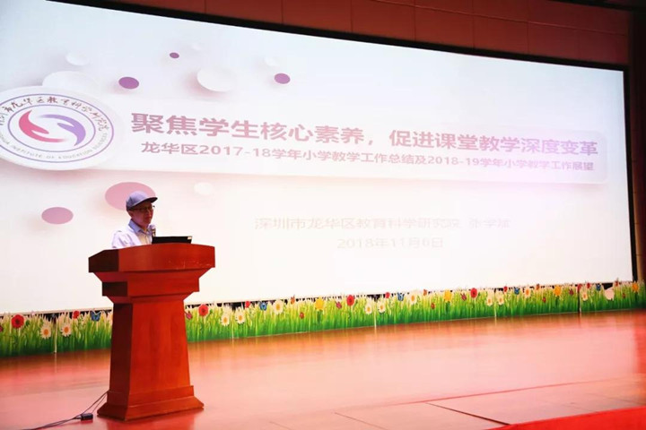 2018年11月6日,深圳市龍華區(qū)“2018年小學(xué)教學(xué)工作會議”在區(qū)教科院附屬小學(xué)星辰劇場順利召開,我校卜祥林校長作為全區(qū)學(xué)校的兩名代表之一在會上作了題為《重構(gòu)小班化教學(xué),提升學(xué)生核心素養(yǎng)》的經(jīng)驗(yàn)介紹。