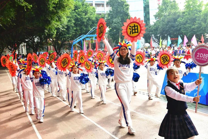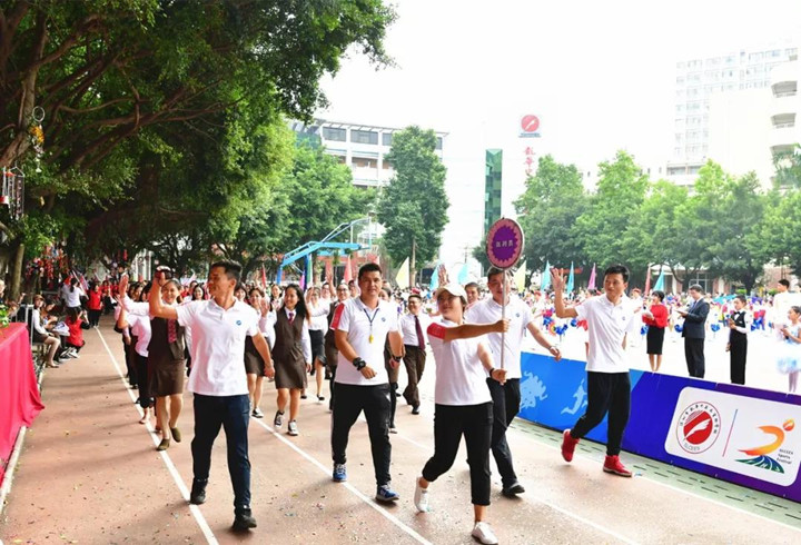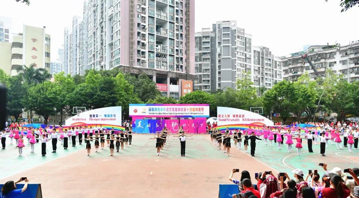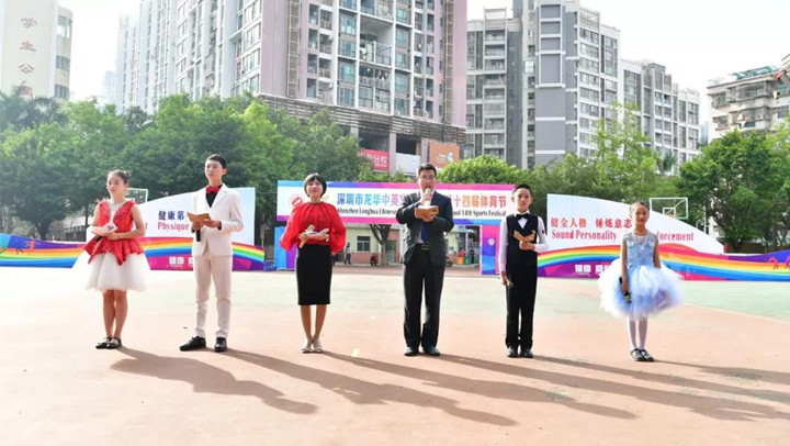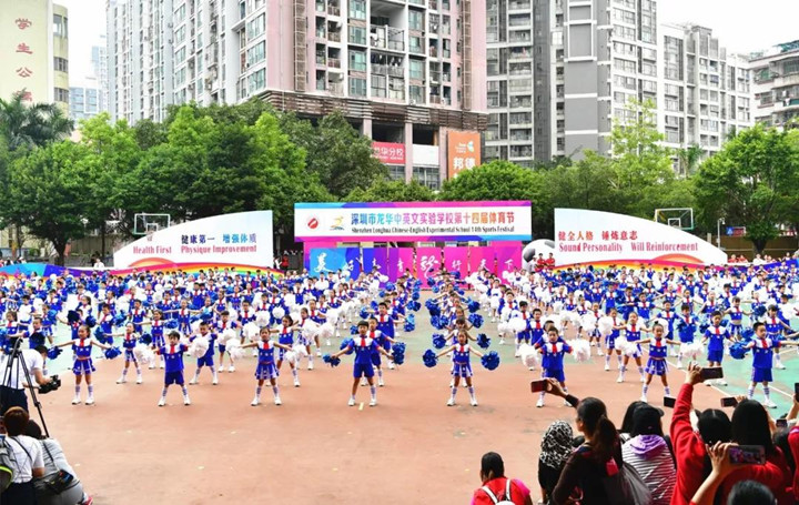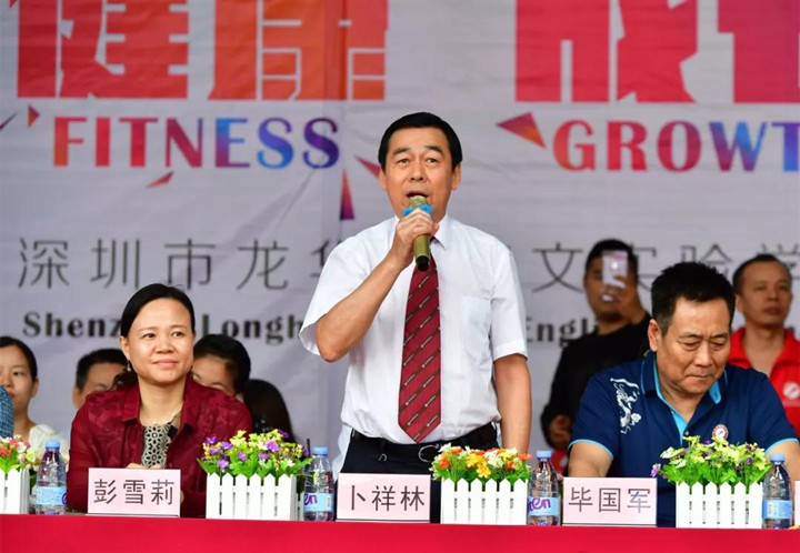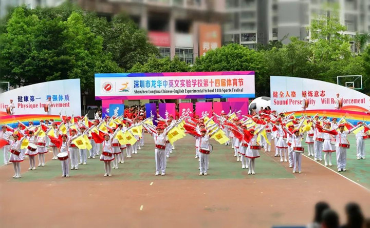 2018年12月5日上午,深圳市龍華中英文實(shí)驗(yàn)學(xué)校運(yùn)動(dòng)場(chǎng)上彩旗飄舞,樂聲悠揚(yáng),充滿勃勃生機(jī)。學(xué)校第14屆體育節(jié)在這“健康、成長(zhǎng)、快樂”的主旋律中隆重開幕。參加本次活動(dòng)的有區(qū)體育教研員隋海林老師,集團(tuán)研究院常務(wù)副院長(zhǎng)、總校校長(zhǎng)畢國(guó)軍博士,結(jié)對(duì)學(xué)校龍華中學(xué)、新華中學(xué)有關(guān)領(lǐng)導(dǎo),駐區(qū)有關(guān)單位領(lǐng)導(dǎo),集團(tuán)各有關(guān)部門、學(xué)校、幼兒園領(lǐng)導(dǎo),以及各年級(jí)學(xué)生家長(zhǎng)。