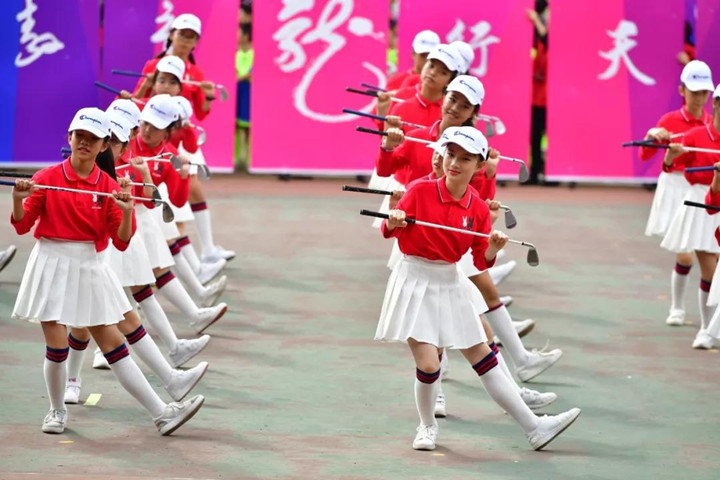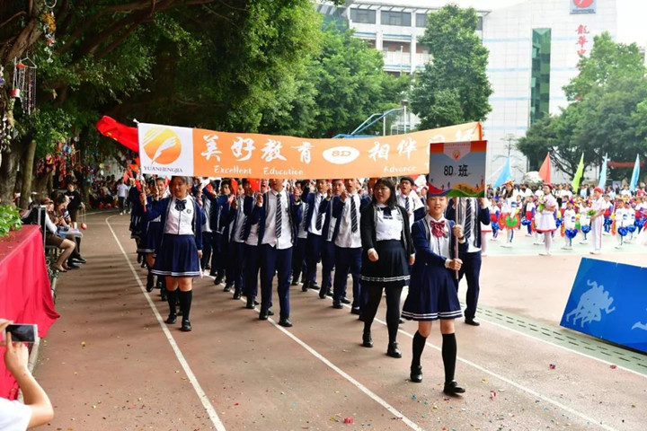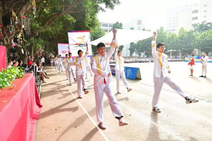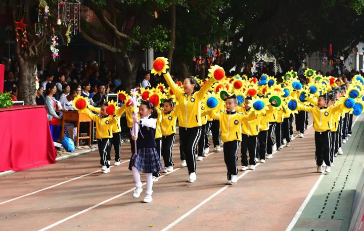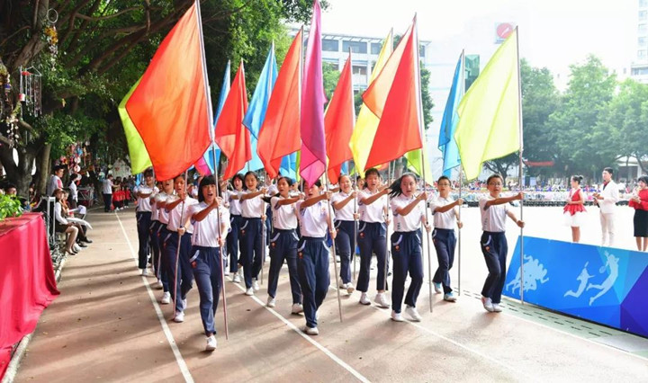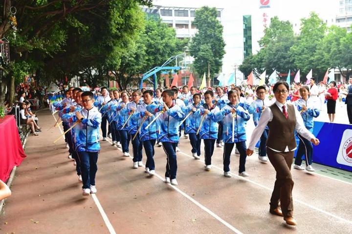 首先進(jìn)行的是隊(duì)列式表演,小學(xué)、初中、高中等70多個(gè)方陣魚貫入場(chǎng),一時(shí)運(yùn)動(dòng)場(chǎng)上形成了一道由色彩鮮艷的服裝和絢麗多彩的道具組成的靚麗風(fēng)景,學(xué)生們步伐矯健,口號(hào)嘹亮,精神抖擻,走出了士氣,走出了自信,贏得了家長(zhǎng)和來賓的陣陣掌聲。