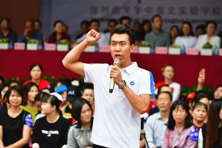 全國(guó)名校長(zhǎng)、特級(jí)教師、學(xué)校卜祥林校長(zhǎng)宣布第14屆體育節(jié)開幕