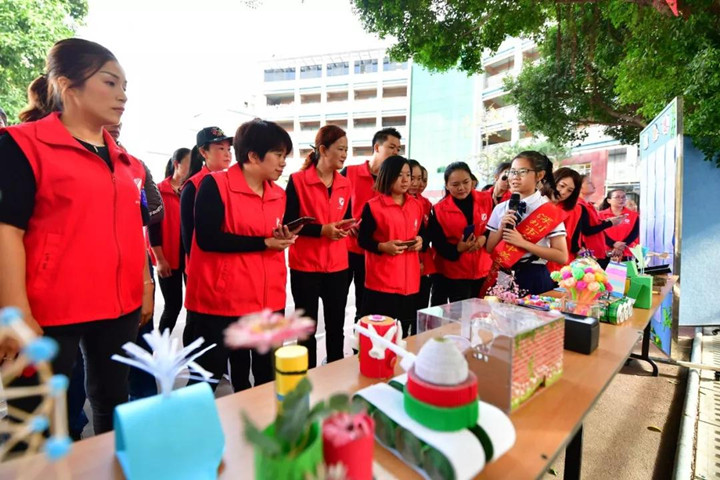 體育節(jié)開幕的同時(shí),體現(xiàn)孩子們?nèi)姘l(fā)展素養(yǎng)的作品和成果展也同時(shí)進(jìn)行。有豐富多彩的學(xué)科作品,有精巧精美的手工作品,有極具中華文化特色的書法及布藝作品,有富有創(chuàng)造力的創(chuàng)客作品等,碩果累累、琳瑯滿目。特別是各展區(qū)的小解說員如數(shù)家珍般的講解引得家長(zhǎng)、來賓競(jìng)相拍照,紛紛點(diǎn)贊!