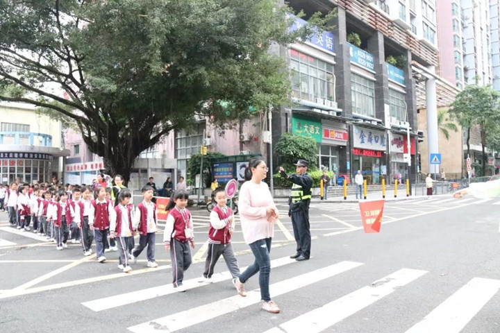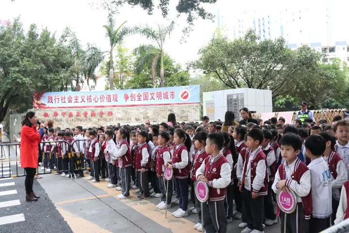 一年級各班同學(xué)在班主任的帶領(lǐng)下開展交通安全活動