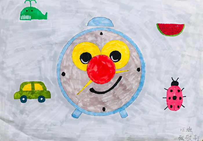 一年級(jí):創(chuàng)意鐘表畫,老師們啟發(fā)學(xué)生以鐘表為基本素材,以繪畫的方式評(píng)選出了學(xué)生優(yōu)秀創(chuàng)意鐘表作品。