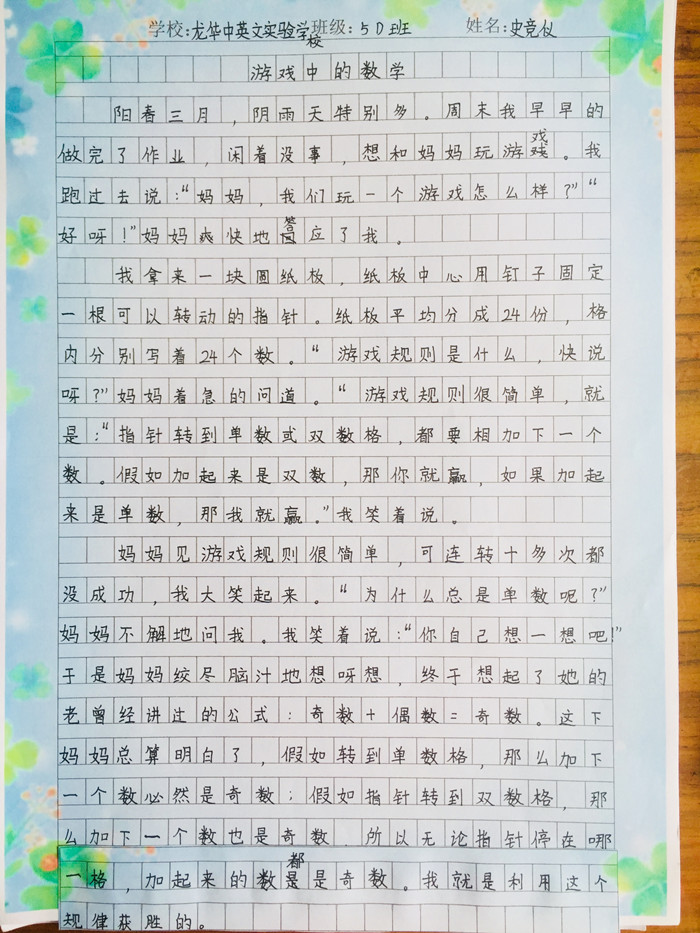 五年級(jí):數(shù)學(xué)作文,用數(shù)學(xué)描述著生活,體會(huì)數(shù)學(xué)來源于生活,與我們的數(shù)學(xué)息息相關(guān)。