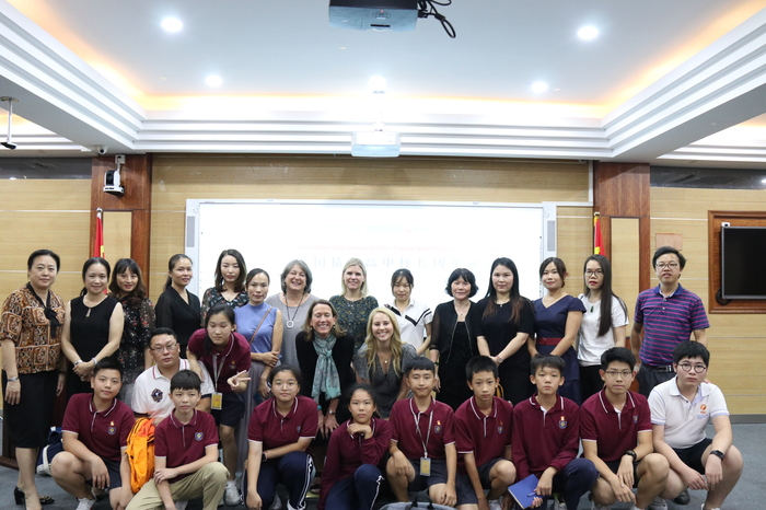 來(lái)賓與部分交流的師生、家長(zhǎng)合影
