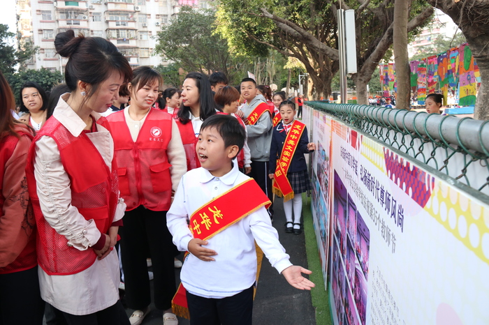 在第15屆體育節(jié)開幕之際,還同步展出了學(xué)校、學(xué)部及孩子們的文化建設(shè)、活動開展、學(xué)科建設(shè)、科技創(chuàng)客及手工制作等方面的作品和成果。在運動場周邊分四個展區(qū)進行展示,前來參加開幕式的近100名來賓、領(lǐng)導(dǎo)、家委成員等,在小解說員的帶領(lǐng)下,一邊觀看作品,一邊娓娓解說,成為體育節(jié)一道靚麗的風(fēng)景。