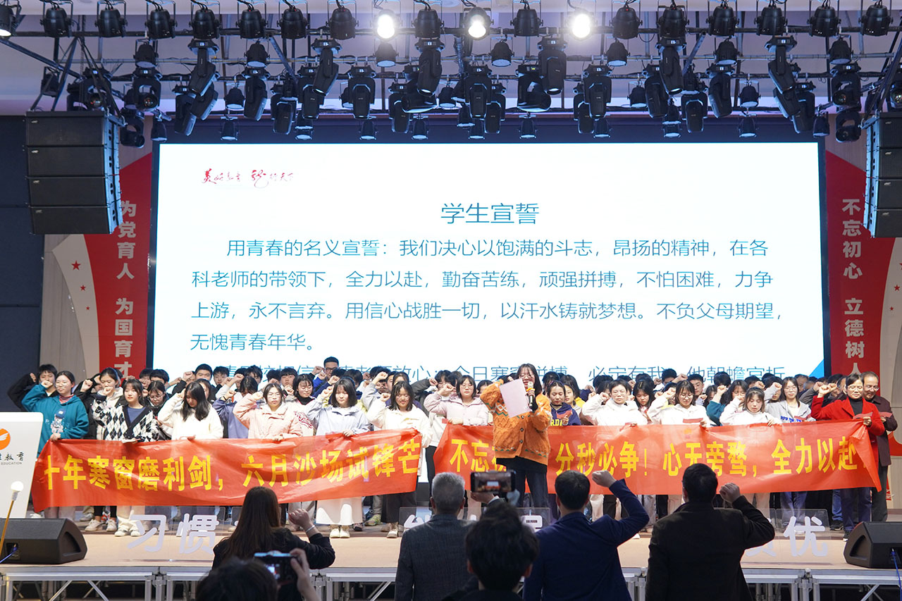 2月28日下午,郴州遠(yuǎn)恒佳學(xué)校舉行了《不忘初心,鏖戰(zhàn)百日,一起向未來》為主題的2022年高三百日誓師大會。許永江總校長、朱達(dá)亮副校長、鄧盛校長助理、劉玉新主任、邱璐主任、朱易成主任、劉樹林主任、高補(bǔ)班主任及科任教師、高補(bǔ)全體學(xué)生、高一6個班班級學(xué)生及高補(bǔ)家長代表出席本次大會。