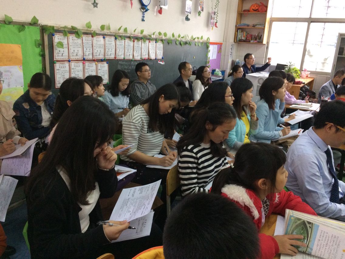活動(dòng)首先由中英文學(xué)校郭蘇陳老師和李松蓢學(xué)校曾老師,在中英學(xué)校的三(B)班和三(E)班,就《趙州橋》一文,上了兩節(jié)風(fēng)格各異的示范課。雖然由于氣溫的驟降有些冷,但是交流的老師們隊(duì)聽(tīng)得認(rèn)真,上課的孩子們個(gè)個(gè)都熱情高漲。兩個(gè)班的同學(xué)們同,不管是小組交流展示,還是個(gè)人和老師互動(dòng),都是那么認(rèn)真,大方,自信,思路開(kāi)闊,語(yǔ)言組織得有序流暢,而且能抓住問(wèn)題的重點(diǎn)進(jìn)行回答,充分展示了中英文學(xué)校國(guó)際部小班化,小組學(xué)習(xí)、展示的優(yōu)勢(shì)。而兩位老師在課堂上所展示的不同的教學(xué)法,也更讓大家在不停的思考中,眼前一亮,大有受益。郭蘇陳老師用她嫻熟的對(duì)課堂的駕馭,舉手投足間,一顰一笑里,和學(xué)生們?cè)谕昝滥醯幕?dòng)中,淋漓盡致的展示了國(guó)際部的“明、學(xué)、研、展、測(cè)”五步習(xí)案教學(xué)法。而曾老師也帶著學(xué)生們,從字詞入手,在文章重點(diǎn)段落的分析中,讓學(xué)生充分的理解了文章的中心思想 。一首《祖國(guó),我不用言語(yǔ)》的小詩(shī),讓學(xué)生們?cè)诟惺苤Z(yǔ)言的唯美中,結(jié)束了一節(jié)課的學(xué)習(xí)。