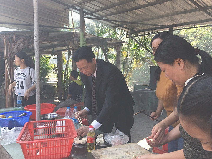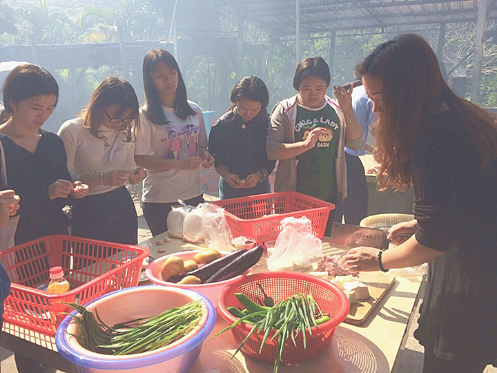 中午時分,大家來到了野炊基地。由于事先大家進(jìn)行了分組,所以剛到目的地大家忙碌起來,抓雞的抓雞,捉魚的捉魚,燒火的燒火,洗菜的洗菜......大家忙得不意樂呼。在大家齊心協(xié)力的協(xié)作下,一個小時后各組都奉上了美味的套餐。