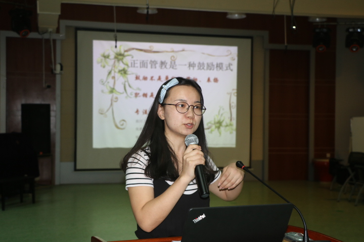 二年級(jí)的郭蘇陳老師說:“我每天都用微笑來迎接孩子們,給他們?cè)O(shè)置一個(gè)個(gè)美麗的‘圈套’,來引導(dǎo)他們快樂、健康地成長”!周琴老師則認(rèn)為正面教育給大家?guī)淼氖且粍┬撵`雞湯,讓老師們意識(shí)到特殊孩子的特殊行為是孩子成長的需要,要和善而堅(jiān)定地去鼓勵(lì),才能有更好的效果。五年級(jí)的楊柳靜老師為她放手給孩子去管理班級(jí)找到了理論依據(jù),學(xué)生的責(zé)任感和自律意識(shí)在實(shí)踐中更能得到提高;徐敏紅老師結(jié)合學(xué)校實(shí)施的成長銀行D幣富翁評(píng)比操作總結(jié)道:“只要多一點(diǎn)尊重、充分相信孩子們的能力,換位思考;孩子們會(huì)回報(bào)給你一個(gè)驚喜”!四位老師的分享與教育教學(xué)實(shí)踐緊密結(jié)合,引發(fā)更多老師的思考,報(bào)告廳里,不時(shí)傳來陣陣掌聲。
