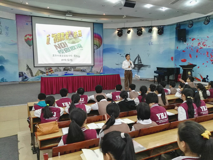 2016年12月19日,深圳市龍華中英文實驗學(xué)校初中部開展了“反校園欺凌,建平安校園”的主題講座活動。