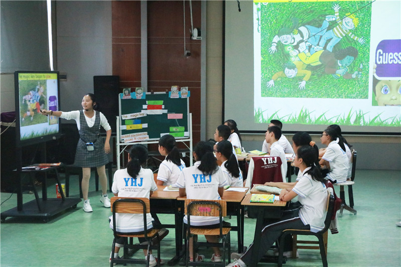 不同于常規(guī)教材的教學,楊老師運用《典范英語》中故事給學生們上了一堂生動有趣的英語課。故事話題是我們從小就聽過的睡美人(Sleeping Beauty)的故事。一段睡美人視頻的播放又引出了學生們的童話記憶,也對這個故事充滿好奇:它會有什么不一樣呢?楊老師在課堂上不斷讓學生讀,聽和說,強化學生的口語能力。故事脈絡的總結(jié)與復述,加強學生邏輯表達能力。最后楊老師讓學生自己發(fā)揮想象,想出不同的方法來喚醒公主,學生的表現(xiàn)的想象力都很精彩。