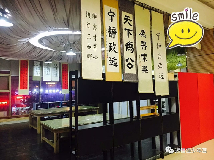 溫主任向來賓介紹美術(shù)區(qū)、介紹遠方美術(shù)有那些項目?書法、素描、創(chuàng)意美術(shù)、動漫、國畫。