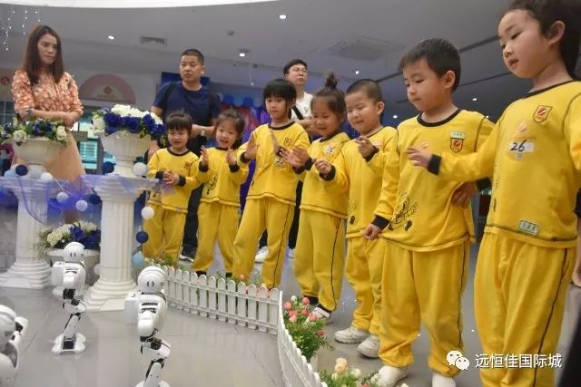在爸爸媽媽和孩子陪同下與機(jī)器人完美的結(jié)合,不只是科技的對(duì)抗,