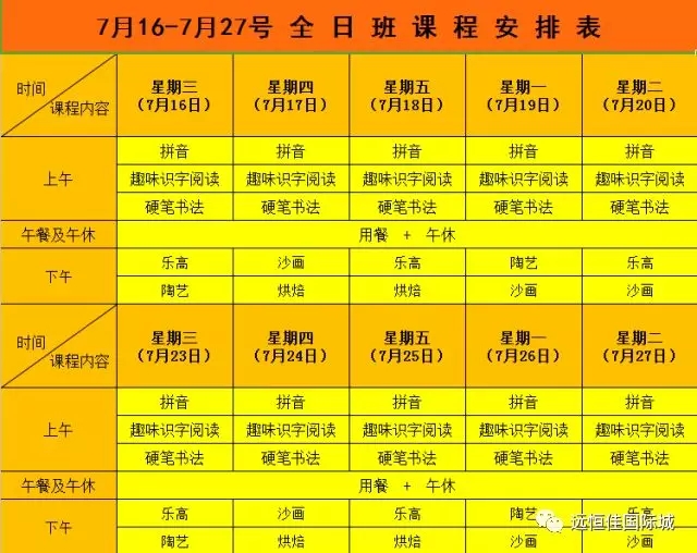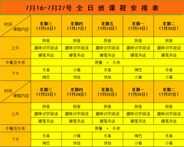暑假開設(shè)課程內(nèi)容:拼音、趣味識字閱讀、硬筆書法、樂高、陶藝、沙畫、烘焙