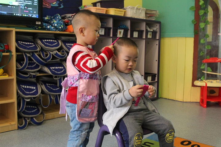 圖為寶寶們?cè)谶M(jìn)行角色扮演