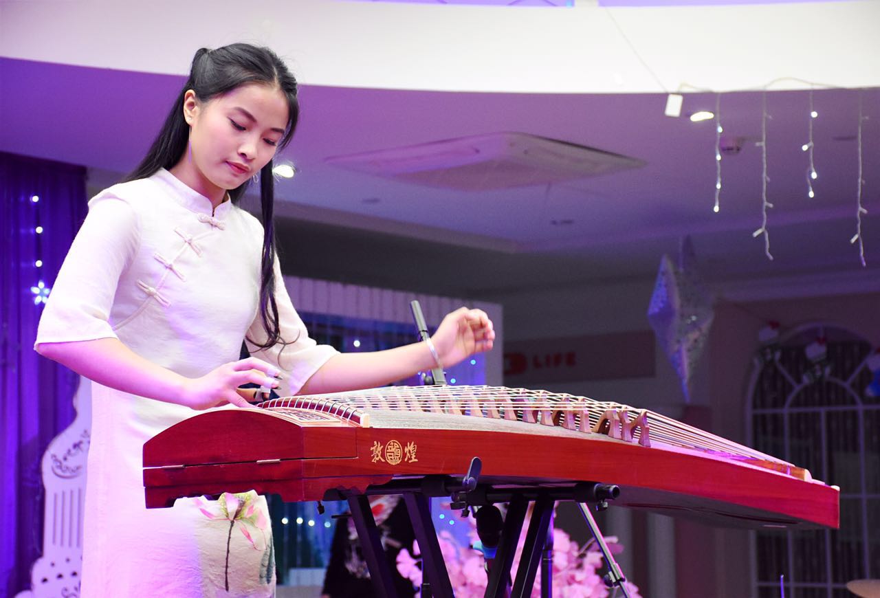 圖為古箏老師鄭麗萍現(xiàn)場(chǎng)演奏歌曲《神話(huà)》