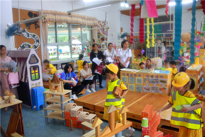 深圳市龍華中英文實(shí)驗(yàn)學(xué)校幼兒園在此次跟崗全園同時(shí)開放,跟崗成員在跟崗之前組成三大組分別進(jìn)入小、中、大班的建構(gòu)區(qū)進(jìn)行觀摩、學(xué)習(xí)。在觀摩中間接引發(fā)思考,帶著問題組內(nèi)討論,組與組之間交流,發(fā)表自己的想法與觀點(diǎn),直接獲取經(jīng)驗(yàn)!
