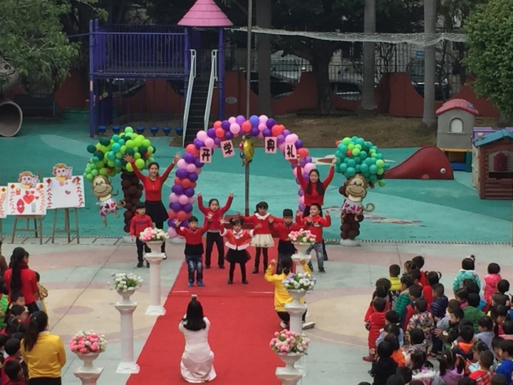 一群機(jī)靈的小猴子也拿著鈴鼓,喜氣洋洋地為幼兒園的開(kāi)學(xué)增添猴年味色彩