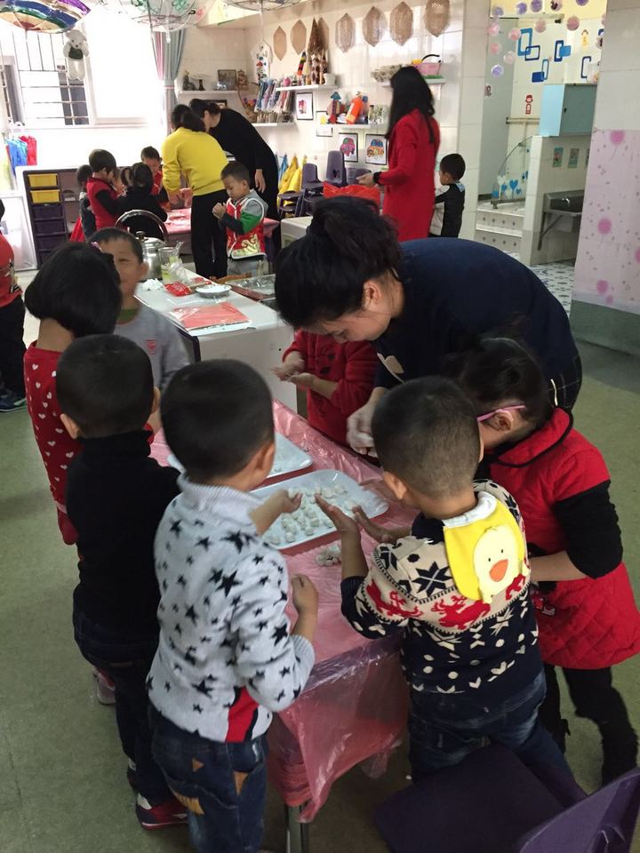 老師和孩子們一起做湯圓、吃湯圓