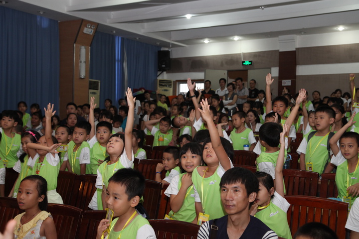 “開營啦!開營啦!”2015年7月12日,激動人心的第十二屆牛津?qū)崙?zhàn)英語夏令營——亞馬遜叢林探險之旅正式開營!這里有Jungle Cats(叢林貓班)、Simba(獅子王班)、Jaguars(美洲豹班)、Angry Birds(憤怒的小鳥班)、Phoenix(鳳凰班)、Tarzan(泰山班)、Fruity Bats(水果蝙蝠班)等,瞬間,龍華中英文實(shí)驗(yàn)學(xué)校校區(qū)變成了熱鬧非凡的“亞馬遜叢林”,來自各校園的233名小營員在滿懷期待中即將開始一段神秘之旅。